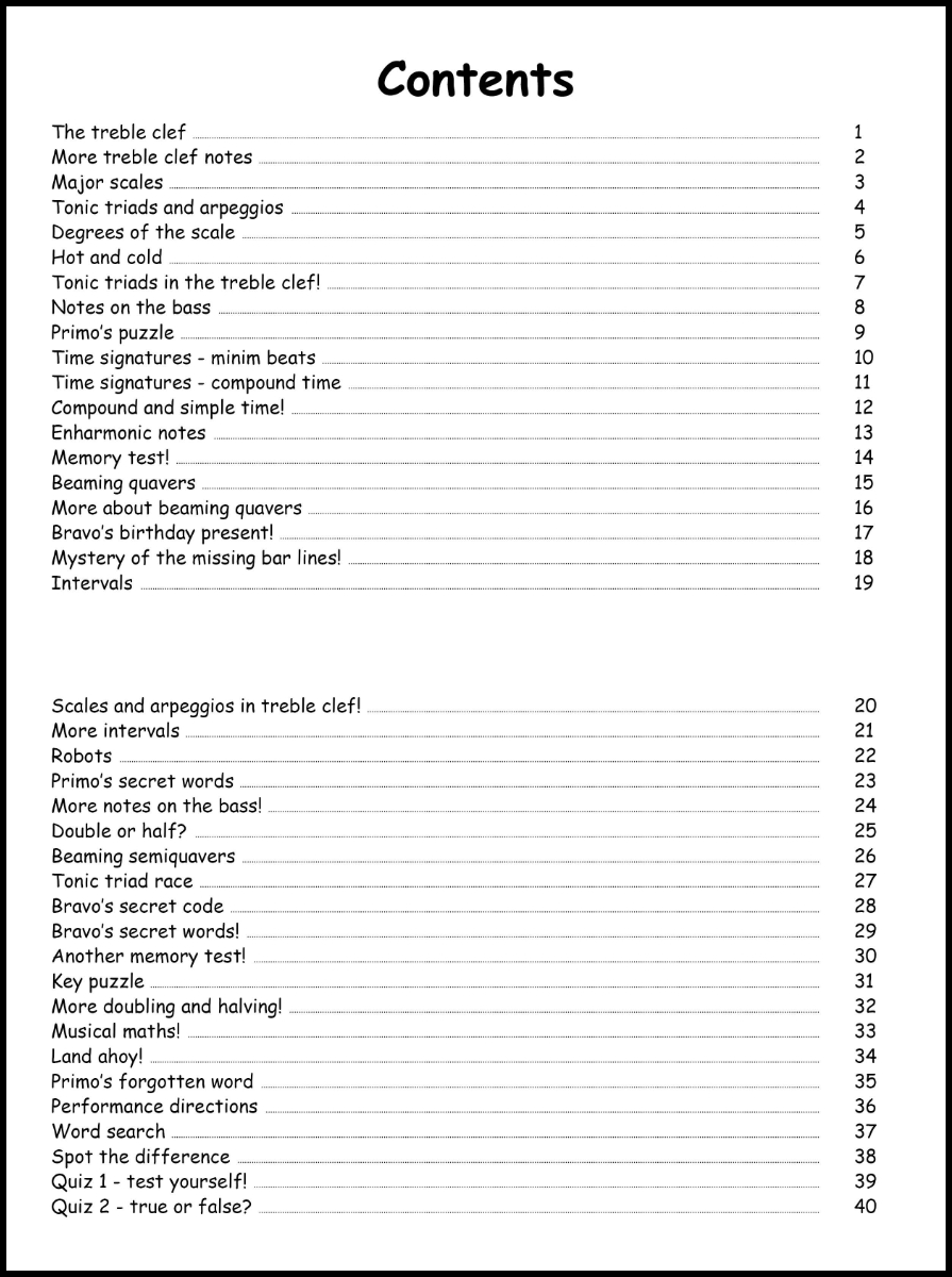 The book opens with a carefully guided introduction to the treble clef – an essential element of Grade 1 theory – before revisiting key concepts from the previous four books. The treble clef is returned to regularly and integrated with other topics throughout, with clear reminders to support secure note recognition.