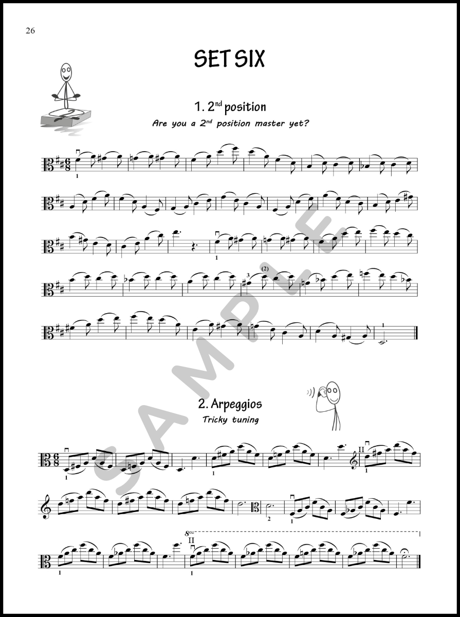 Light-hearted stick-figure illustrations highlight physical movements while keeping technical work approachable, and optional metronome challenges offer a way for students to develop control and consistency further.
